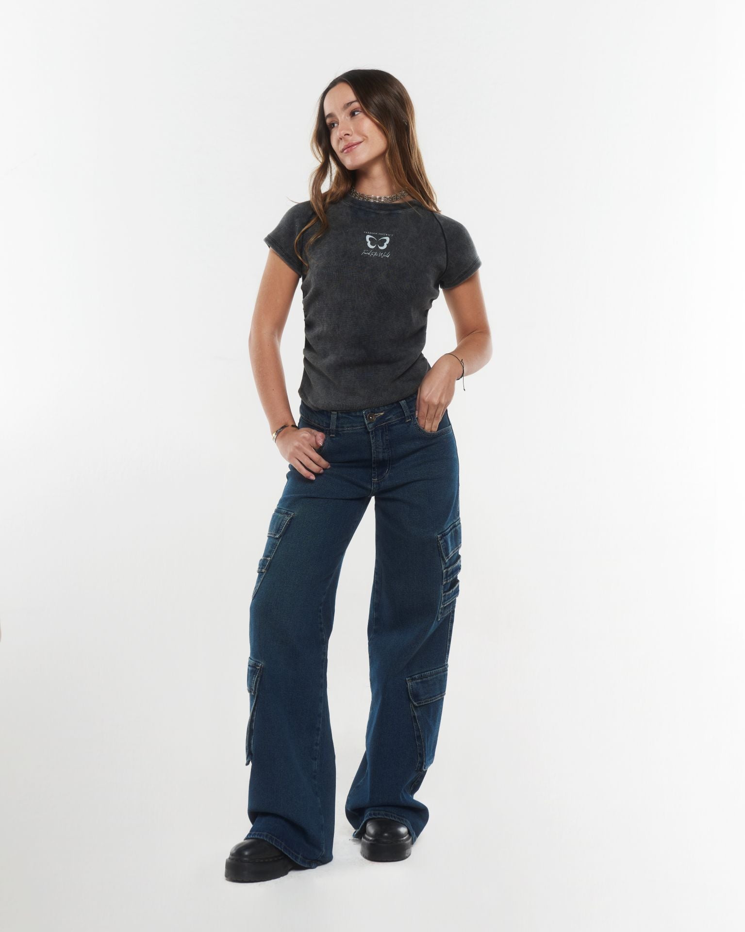 POLERA JIM REGULAR GRAVILLADA RECOGIDO EN COSTADOS GRIS EFESIS