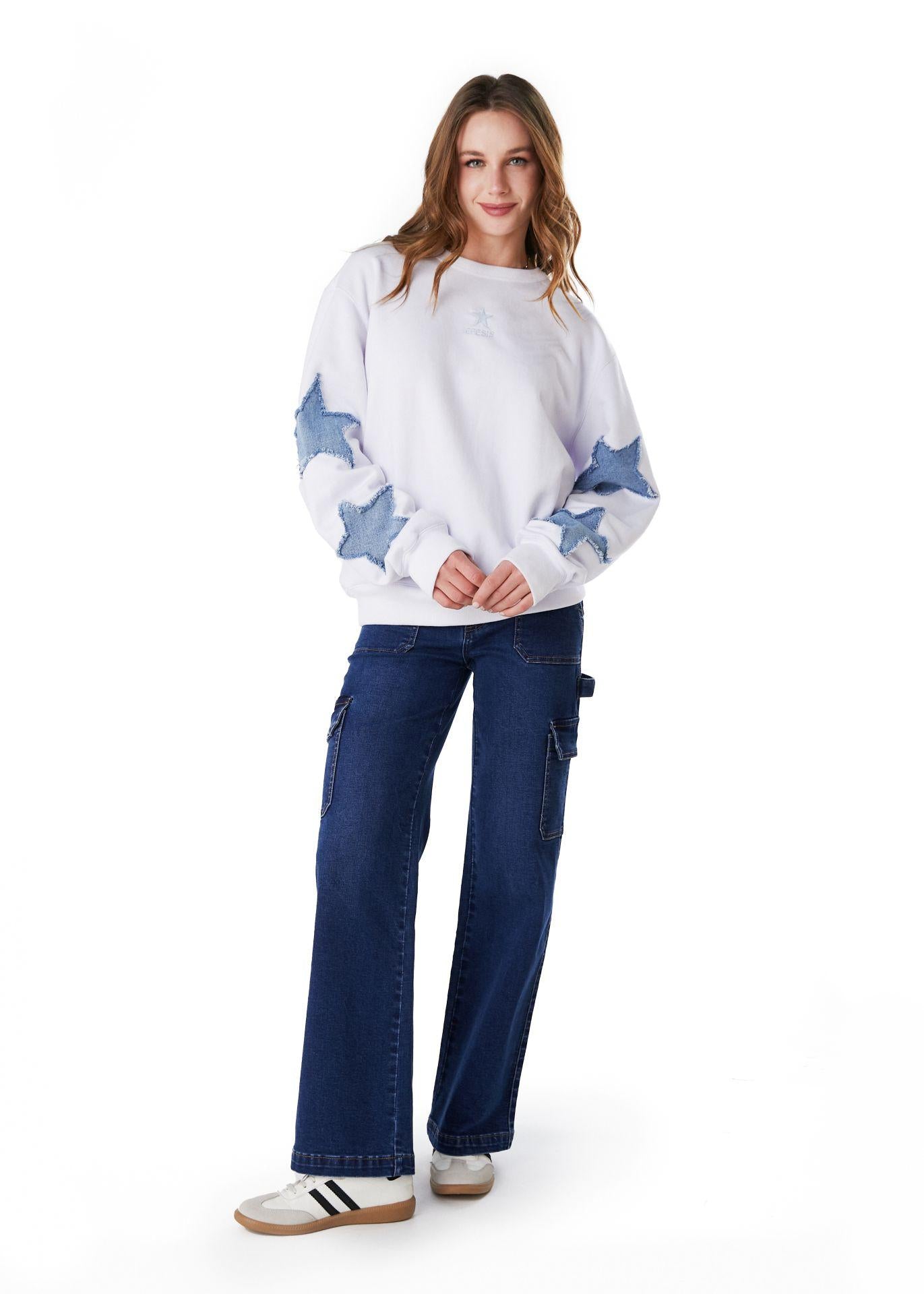 POLERÓN DUBOIS REGULAR APLICACIÓN ESTRELLAS BLANCO EFESISUn must-have para brillar todos los días ✨. El Polerón Dubois llega en un blanco luminoso, con aplicaciones de estrellas que le dan ese toque mágico y lleno de onda. Su calce regular es súper cómodo y versátil, ideal para acompañarte en looks relajados pero con estilo. Perfecto para combinar con jeans, faldas o lo que más te guste, este polerón es la prenda que convierte lo casual en especial, haciéndote sentir fresca, ligera y siempre lista para destacar.PRODUCTO HECHO EN CHILEComposición : 70% ALGODON 30% POLYESTER